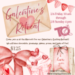 Bring your projects, materials, and machine or rent a machine for $15 a day. Enjoy the company of other quilters!