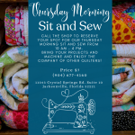 Bring your projects, materials, and machine or rent a machine for $15 a day. Enjoy the company of other quilters!